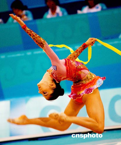 雅典當(dāng)?shù)貢r(shí)間八月二十五日,希臘藝術(shù)體操個(gè)人全能選手ANDRIOLA.E進(jìn)行奧運(yùn)會賽前排練。中新社記者:王瑤