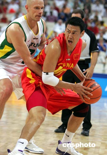 中新網(wǎng)8月26日電 在剛剛結(jié)束的雅典奧運(yùn)會(huì)男子籃球的一場(chǎng)四分之一決賽中,由NBA球星姚明率領(lǐng)、但實(shí)力不濟(jì)的中國(guó)隊(duì),最終以75:95的比分負(fù)于奪標(biāo)大熱門立陶宛隊(duì)。