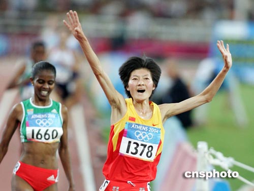 然而中國人興奮的情緒還沒有冷卻,又一匹“東方神鹿”再現(xiàn)雅典——刑慧娜勇奪女子萬米金牌,她在沖刺階段依然保持了良好的體力和狀態(tài),并在最后一個(gè)直道甩開此前一直領(lǐng)先的埃塞俄比亞選手率先沖線。