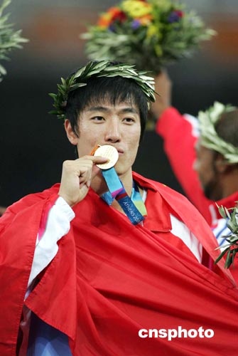 兩年前,年輕的劉翔還是阿蘭·約翰遜的“追星一族”,他要約翰遜簽名的時(shí)候沒(méi)有想到兩年后他也會(huì)被明星的光環(huán)圍繞。他已成為中國(guó)在田徑項(xiàng)目奪得奧運(yùn)金牌的首名男子運(yùn)動(dòng)員。
