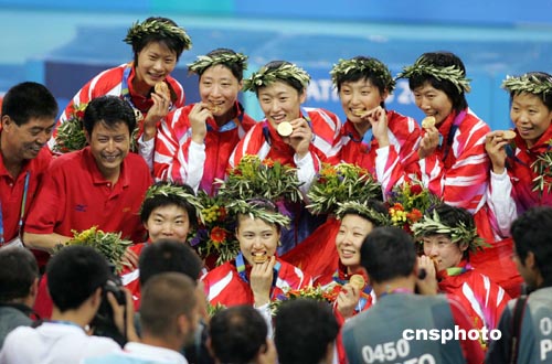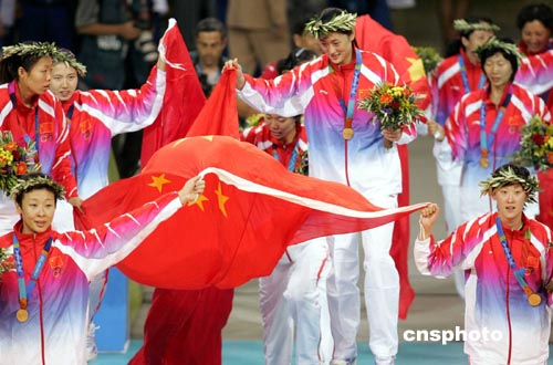 中新社雅典八月二十八日電(記者 宋方燦)在今晚進(jìn)行的雅典奧運(yùn)會(huì)女排決賽中,中國(guó)女排姑娘們以三比二力克俄羅斯隊(duì),奪取金牌。