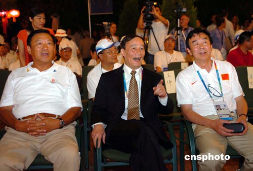 第二十九屆奧運(yùn)會(huì)組委會(huì)執(zhí)行主席、中國(guó)國(guó)家體育總局局長(zhǎng)袁偉民,第二十九屆奧運(yùn)會(huì)組委會(huì)執(zhí)行主席、北京市市長(zhǎng)王岐山,國(guó)家旅游局局長(zhǎng)何光(左日右韋),第二十九屆奧運(yùn)會(huì)組委會(huì)副主席蔣效愚,中國(guó)駐希臘大使唐振琪,VISA國(guó)際組織首席執(zhí)行官克里斯托弗,希臘旅游部部長(zhǎng)迪米特里斯,雅典市市長(zhǎng)巴科雅姆尼,國(guó)際奧委會(huì)及雅典奧組委的有關(guān)官員出席了儀式。