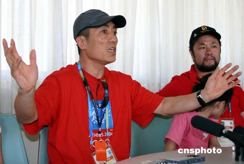 中國導演張藝謀于當?shù)貢r間二十八日在雅典會見記者,透露中國演員在奧運會閉幕式上的八分鐘表演將體現(xiàn)“百分百中國特色”。作者:章敦華