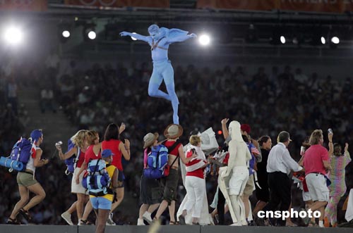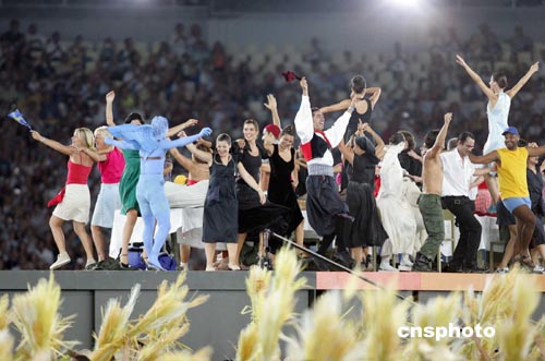 當(dāng)?shù)貢r(shí)間八月二十九日,第二十八屆奧林匹克運(yùn)動(dòng)會在雅典圓滿結(jié)束。圖為閉幕式上的文藝表演。中新社記者:毛建軍
