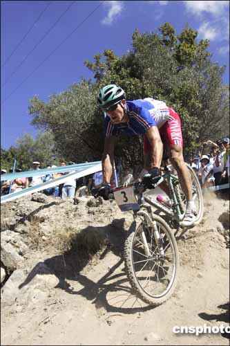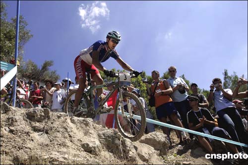 在當(dāng)?shù)貢r間28日進行的山地男子自行車越野比賽中,法國選手阿布薩隆用時2小時15分03秒,獲得冠軍。