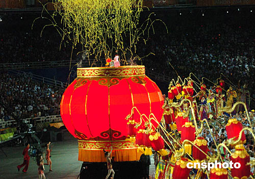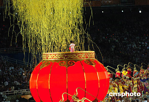 在當(dāng)?shù)貢r(shí)間8月29日舉行的奧運(yùn)會(huì)閉幕式上,一中國(guó)小女孩在緩緩升起的大紅燈籠上演唱《茉莉花》。