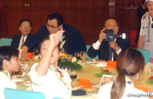 外交部部長(zhǎng)李肇星興之所至,借來記者的相機(jī)為奧運(yùn)健兒留下精彩瞬間。中新社記者:武仲林