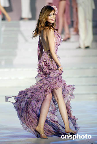 9月5日晚,“時尚杭州之旅·2004年新絲路世界模特大賽”在浙江省人民大會堂舉行,來自二十八個國家的四十七名選手將參加小禮服、泳裝、晚裝展示、情景劇表演以及系列專業(yè)技能展示的比賽。中新社記者:盛佳鵬
