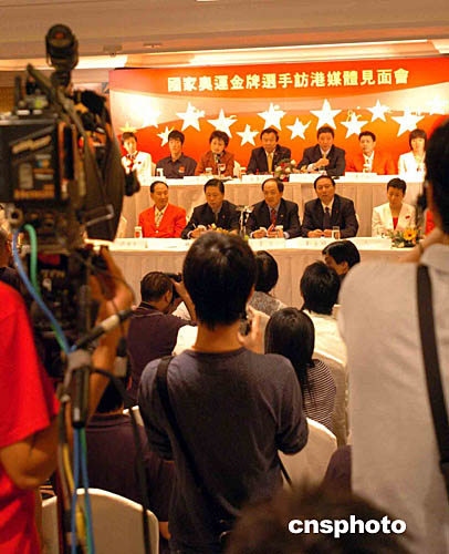 馬不停蹄的金牌選手們,下午在其入住的酒店安頓不久,便出席媒體見面會(huì)。代表團(tuán)團(tuán)長、國家體育總局局長袁偉民表示,金牌運(yùn)動(dòng)員訪港已成慣例,他在雅典奧運(yùn)結(jié)束回國后,首先想到的便是要到港澳,與同胞分享贏取金牌的喜悅。他說,香港市民向來對國家運(yùn)動(dòng)員十分支持,今次運(yùn)動(dòng)員來港的表演,門票亦迅即售罄,反映港人的愛國熱情,令他非常感動(dòng)。