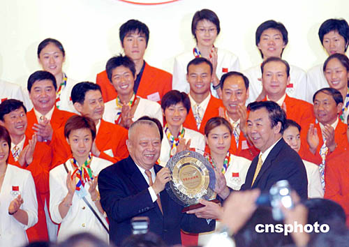 代表團(tuán)團(tuán)長(zhǎng)、國(guó)家體育總局局長(zhǎng)袁偉民說,今天剛剛抵達(dá)香港,就受到香港同胞親人般的歡迎。他對(duì)長(zhǎng)期支持祖國(guó)體育事業(yè)發(fā)展,關(guān)心祖國(guó)體育健兒的香港同胞,表示衷心問候和誠(chéng)摯謝意。他說,中國(guó)選手在雅典奧運(yùn)會(huì)上取得的優(yōu)異成績(jī),得益于祖國(guó)綜合國(guó)力的強(qiáng)大,得益于祖國(guó)在世界上影響力的擴(kuò)大,得益于內(nèi)地與香港長(zhǎng)期以來在體育事業(yè)上的交流與合作,得益于廣大香港同胞對(duì)祖國(guó)內(nèi)地體育事業(yè)的關(guān)心和支持。內(nèi)地體育事業(yè)取得的成果,包含了香港同胞的貢獻(xiàn)。這次訪港,也是專門來感謝和回報(bào)香港同胞長(zhǎng)期以來對(duì)內(nèi)地體育事業(yè)的關(guān)心和支持,與香港同胞共同分享這巨大的榮譽(yù)和喜悅。他希望兩地有更多的交流和合作。
