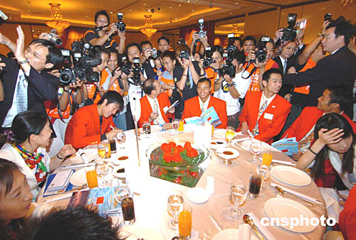 港體協(xié)暨奧委會會長霍震霆在致辭時說,國家隊取得歷史性的最好成績,每塊獎牌背后都包含著教練、選手及其他工作人員的汗水、努力。香港乒乓雙打所奪得的銀牌是香港回歸后的第一面奧運獎牌。運動員的這些佳績,除了令香港市民引以為傲外,亦希望能由此喚起香港市民對體育運動的關注及支持,并吸引更多有潛質(zhì)的專業(yè)人士投身體育事業(yè),為二OO九年的香港東亞運動會作出最佳準備。