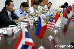 九月十日,廣西壯族自治區(qū)黨委常委、自治區(qū)副主席、中國·東盟博覽會組委會副主任兼秘書長李金早(左一)向媒體介紹中國—東盟博覽會籌備工作情況。本屆博覽會共有室內(nèi)展位1763個,截至八月三十日,博覽會秘書處共收到境內(nèi)外申請展位4261個,國內(nèi)各省市報名申請展位2933個,東盟及其他國家和地區(qū)的申請展位781個。二零零四年十一月三日至六日,中國—東盟博覽會和中國—東盟商務(wù)與投資峰會將在廣西南寧市隆重舉行。中新社記者:張勤