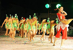 九月九日晚上,重慶市云陽(yáng)新縣城云陽(yáng)實(shí)驗(yàn)小學(xué)大操場(chǎng)上,全縣教師四百六十余人出席隆重集會(huì),慶祝第二十個(gè)教師節(jié)的到來(lái),并與三千多市民群眾一同觀(guān)看演出,家長(zhǎng)、學(xué)生成了晚會(huì)的忠實(shí)觀(guān)眾。圖為教師們表演的民族舞蹈。作者:饒國(guó)君
