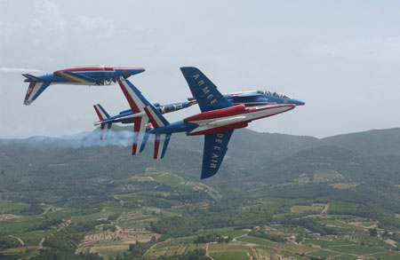 法國空軍的“法蘭西巡邏兵”飛行表演隊(duì)正式成立于1964年2月。飛行表演隊(duì)的飛機(jī)涂著同法國國旗一樣的紅、白、藍(lán)三種顏色,機(jī)群在空中做飛行表演時(shí)也常常把著三種顏色的煙跡留在空中。它象征著“自由”(紅色)、“民主”(白色)、“博愛”(藍(lán)色),體現(xiàn)了法國人民勇敢、浪漫的傳統(tǒng)和對(duì)未來美好的愿望。圖為表演中的“法蘭西巡邏兵”飛行隊(duì)(來源:艦船知識(shí)網(wǎng)絡(luò)版)