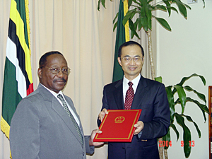 葉大波大使首先向利物浦總統(tǒng)閣下轉(zhuǎn)達(dá)了胡錦濤主席和溫家寶總理的親切問(wèn)候,并代表中國(guó)政府和人民向多米尼克政府和人民致以崇高的敬意和良好的祝愿。葉大使說(shuō),多米尼克國(guó)自獨(dú)立以來(lái),為維護(hù)國(guó)家主權(quán)、振興民族經(jīng)濟(jì)進(jìn)行了不懈的努力,取得了重要成就。多政府奉行獨(dú)立自主的外交政策,努力發(fā)展同世界各國(guó)的友好合作關(guān)系,促進(jìn)了加勒比地區(qū)的穩(wěn)定和發(fā)展。中國(guó)政府和人民衷心祝愿多米尼克國(guó)在未來(lái)的歲月中取得更大的成就。