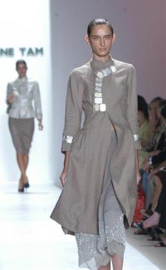 中新網(wǎng)9月15日電 據(jù)世界日報報道,曼哈頓13日舉行2005年春裝新展,知名華裔服裝設計師譚燕玉,采用中國云南“苗族”服飾因素,將鮮度極高的色彩與中性色調(diào)相搭襯,配上大膽的亮銀色,激起一股視覺震撼。