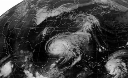 中新網(wǎng)9月15日電 據(jù)美聯(lián)社報道,颶風“伊萬”即將登陸美國東南部沿海。當?shù)卣φf服上百萬居民盡快疏散至安全地帶。圖為美國東部時間15日凌晨5點的衛(wèi)星云圖,圖片中央白色云圖即為“伊萬”颶風。(固山)