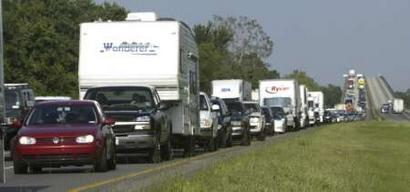 據(jù)路透社報道,颶風(fēng)“伊萬”即將登陸美國東南部沿海。當(dāng)?shù)卣φf服上百萬居民盡快疏散至安全地帶。圖為美國南部沿海居民蜂擁撤出颶風(fēng)登陸區(qū)。(固山)