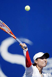 九月十八日,在北京網(wǎng)球中心中央球場(chǎng)進(jìn)行的ITF女子單打決賽中,中國(guó)選手鄭潔以二比零戰(zhàn)勝隊(duì)友李娜奪得冠軍。圖為鄭潔在比賽中。中新社記者:盛佳鵬