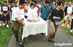 美西時間九月十八日,中國駐舊金山總領館的外交官們帶著大月餅到加州庫柏蒂諾市參加當?shù)貎S社舉辦的第六屆中秋游園會。作者:陳鋼