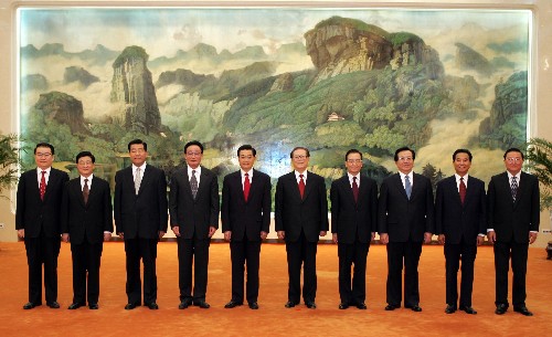 下午五時(shí)四十五分,胡錦濤、江澤民、吳邦國、溫家寶、賈慶林、曾慶紅、黃菊、吳官正、李長春、羅干等領(lǐng)導(dǎo)來到參加全會(huì)的人員中間,同大家親切見面,并合影留念。