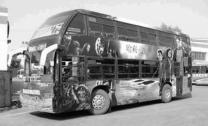 為配合影片的上映,昨日凌晨5點,噴涂有影片人物造型的“魔法”公交車開上北京街頭。