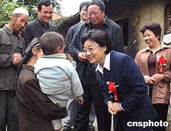 國務(wù)院僑辦副主任李海峰一行二十日來到甘肅積石山縣胡林家鄉(xiāng)、居集鎮(zhèn)深溝村、小關(guān)鄉(xiāng)等村社,連續(xù)走入十多戶農(nóng)家,逐一向他們噓寒問暖,并與他們親切交談。李海峰到群眾的新房里坐坐,也要進(jìn)入舊房里看看。她鼓勵(lì)群眾們說,安居的同時(shí)還應(yīng)該通過勤勞致富。