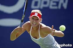 九月二十二日,中國網(wǎng)球公開賽的WTA賽事的女單比賽繼續(xù)進(jìn)行,在北京網(wǎng)球中心中央球場進(jìn)行的一場引人注目的女單比賽中,三號種子俄羅斯選手莎拉波娃輕松戰(zhàn)勝另一名俄羅斯選手的帕諾娃,順利晉級下一輪比賽。中新社記者:盛佳鵬