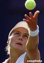 九月二十二日,中國網(wǎng)球公開賽的WTA賽事的女單比賽繼續(xù)進(jìn)行,在北京網(wǎng)球中心中央球場進(jìn)行的女單比賽中,中國女單頭號選手鄭潔零比二不敵俄羅斯選手佩特洛娃,無緣晉級下一輪比賽。中新社記者:盛佳鵬