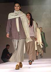 九月二十三日晚,香港時裝設(shè)計師吳美儀以簡約大氣,洋溢陸歐風情的時裝作品在2004青島國際時裝周上亮相。作者:史利
