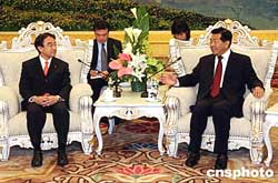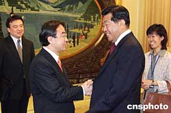 中國(guó)全國(guó)政協(xié)主席賈慶林九月二十四日在北京人民大會(huì)堂會(huì)見(jiàn)以日本眾議院議員、日中友好議員聯(lián)盟事務(wù)局次長(zhǎng)近藤昭一為團(tuán)長(zhǎng)的日本民主黨議員訪華團(tuán)。中新社記者:毛建軍