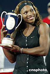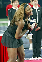九月二十六日晚,中國網(wǎng)球公開賽女子單打決賽在北京網(wǎng)球中心中央球場進(jìn)行,美國網(wǎng)壇名將小威廉姆斯以二比一戰(zhàn)勝美網(wǎng)新后、俄羅斯名將庫茲涅佐娃,摘得桂冠。中新社記者:盛佳鵬