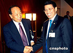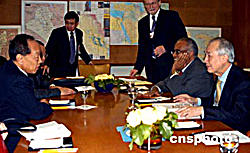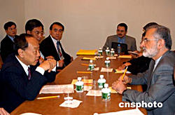 當(dāng)?shù)貢r間九月二十八日,正在紐約聯(lián)合國總部出席第五十九屆聯(lián)大的中國外長李肇星(左),會見了聯(lián)合國名人小組成員。由聯(lián)合國秘書長安南提議建立的“威脅、挑戰(zhàn)與變革”高級別名人小組,專門負(fù)責(zé)研究聯(lián)合國的改革問題,并將于年底提出報(bào)告,供會員國審議。作者:趙海燕