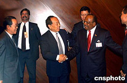當(dāng)?shù)貢r(shí)間九月二十八日,正在紐約聯(lián)合國總部出席第五十九屆聯(lián)大的中國外長李肇星,會見了巴布亞新幾內(nèi)亞外長納馬柳(右一)。作者:趙海燕