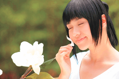 活潑開朗的Karena,雖然在拍攝期間經(jīng)常被蚊子叮,但當(dāng)看到軟綿綿的荷花玉蘭時(shí),即情不自禁地愛上它。廣告中,Karena更將花瓣貼近臉龐以示花瓣的柔軟,而鏡頭后的Karena亦高興地不停聞摸花瓣,因?yàn)橄愀鄄⑽从谐鍪圻@種罕有的美麗花種。