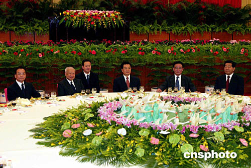 胡錦濤、吳邦國、溫家寶、賈慶林、曾慶紅、黃菊、吳官正、李長春、羅干等中國領(lǐng)導(dǎo)人蒞臨會場,與各界嘉賓共賀國慶。