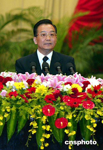 中國(guó)國(guó)務(wù)院九月三十日在北京舉行招待會(huì)慶祝中華人民共和國(guó)成立五十五周年,國(guó)務(wù)院總理溫家寶發(fā)表講話。溫家寶指出:祖國(guó)完全統(tǒng)一的神圣目標(biāo),一定要實(shí)現(xiàn),一定能夠?qū)崿F(xiàn)。