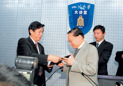 據(jù)成都商報報道,30日下午5點鐘左右,接過“四川大學(xué)名譽教授”的聘書后,金大俠頗為感動。他說:“我對四川大學(xué)中文系一直很仰慕,能夠有這個機會,我很高興。我是不敢當(dāng)教授的,對同學(xué)們,我來給你們當(dāng)師兄,跟你們共同學(xué)習(xí)!彼拇ù髮W(xué)校長謝和平表示:金庸先生答應(yīng)擔(dān)任四川大學(xué)名譽教授,對大家了解、學(xué)習(xí)和研究中國文化注入了新力量。而大俠也揮筆題詞高度贊揚這所百年學(xué)府:川大領(lǐng)導(dǎo)中國學(xué)術(shù)研究,心儀依舊;得參與行列不勝榮幸。