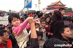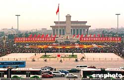 十月二日的國慶節(jié)假日,天安門廣場向北京市民來賓開放,數(shù)十萬游人,紛至沓來,從各個(gè)通道擁進(jìn)廣場觀光,形成節(jié)日人山人海的景觀。作者:鄒憲