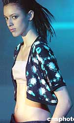 十月八日,香港環(huán)球針織布領先制造商福田實業(yè)集團,在香港舉行成立三十五周年慶祝會,圖為模特展示由理工大學服裝設計師選用該公司針織布面料設計的新款休閑裝。作者:錢興強