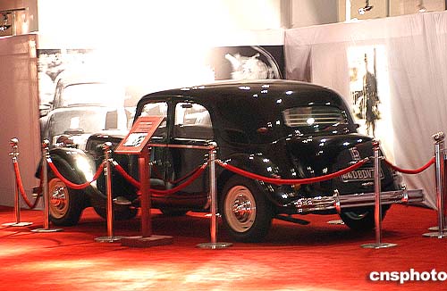 由中國人民外交學(xué)會、中國對外文化交流協(xié)會和法國戴高樂基金會聯(lián)合主辦的《叱吒風(fēng)云的偉人——戴高樂生平展》,將于10月10日在北京中華世紀壇隆重開幕。這一活動也是法蘭西共和國總統(tǒng)希拉克對中國進行國事訪問之際,正式拉開帷幕的“中法文化年”——法國文化年的活動之一。展覽主要通過圖片、視聽手段復(fù)原戴高樂生前的生活和工作場景,展示戴高樂將軍的一生和他為法國所做的貢獻。圖為戴高樂乘坐過的汽車。作者:鄒憲