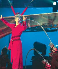 中新網(wǎng)10月10日電 據(jù)京華時報報道,昨晚,劉德華2004世界巡回演唱會北京站演出在歌迷的尖叫聲中開場。演唱會歌舞并進(jìn),穿插著港臺、傳統(tǒng)京劇、百老匯等幾種風(fēng)格,使得整場演出更像大舞臺劇。現(xiàn)場,劉德華臺上換衣、袒胸露點、大膽挑逗女伴舞,不時對歌迷說一些貼心的話,將現(xiàn)場氣氛煽動得極為熱烈。