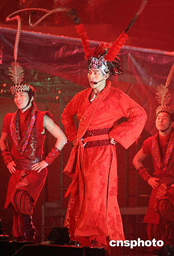 在演唱《笨小孩》的過(guò)程中劉德華插入新穎的京劇唱腔并配合走臺(tái)動(dòng)作,詼諧幽默的舞臺(tái)效果引來(lái)掌聲陣陣。