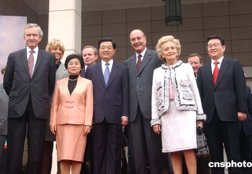 中新社北京十月十日電(記者李靜)“法國印象派珍品展”今天在中國美術(shù)館開幕,中國國家主席胡錦濤和在華訪問的法國總統(tǒng)希拉克,以及兩國元首的夫人一道觀看了畫展,法國奧賽博物館館長樂莫瓦納兼任全程解說。