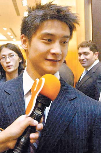 可能是因?yàn)殚L(zhǎng)途飛行的緣故,當(dāng)晚不停周旋于各路名流之間的田亮,看起來(lái)有些力不從心。當(dāng)記者問(wèn)是參加運(yùn)動(dòng)訓(xùn)練消耗體力大還是出席各種社交活動(dòng)消耗大時(shí),他很圓滑地回答道:“出席活動(dòng)很耗費(fèi)精力,不過(guò)論體力消耗當(dāng)然還是運(yùn)動(dòng)訓(xùn)練大。雖然各種社交活動(dòng)給我枯燥的跳水生涯增添了色彩,但我只把它當(dāng)作暫時(shí)的調(diào)整,春節(jié)后會(huì)投入訓(xùn)練中!碑(dāng)被問(wèn)到與英皇簽約進(jìn)入娛樂(lè)圈的事情時(shí),田亮坦率地表示正在考慮中:“我愿意去試一試,嘗試一下與過(guò)去完全不同的人生滋味。不過(guò)目前只想輕松一下,簽約的問(wèn)題慢慢由經(jīng)紀(jì)人洽談!