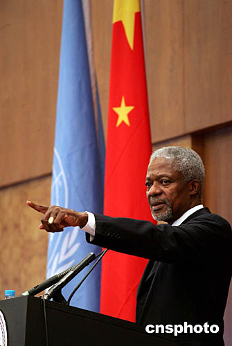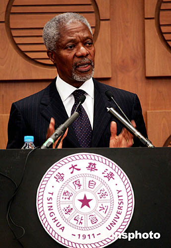 正在北京訪問的聯(lián)合國秘書長安南,十月十一日在清華大學(xué)發(fā)表演講。中新社記者:毛建軍