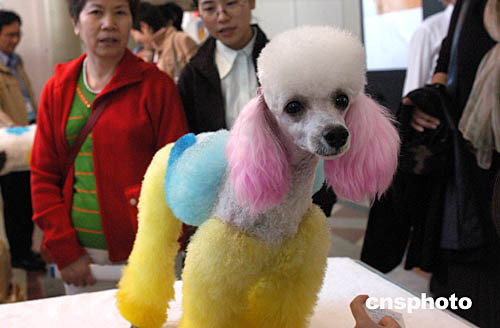 一只經(jīng)過精心化妝的“貴婦”犬十月十一日在北京展覽館開幕的“第八屆中國國際寵物水族用品展覽會”上亮相。本屆展覽會展出內(nèi)容包括各類寵物用具、貓狗食品、服裝、寵物美容用品、寵物玩具等,來自中國、美國、法國等國家的近兩百家企業(yè)參加展出。中新社記者:鄒憲