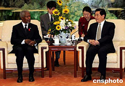 安南感謝胡錦濤主席的會見,表示贊同胡主席對國際形勢的分析和看法,感謝中國政府長期以來對聯(lián)合國和他本人工作的支持。安南說,中國在國際事務中的作用和影響正日益上升,是維護世界和平與發(fā)展的重要力量。在實現(xiàn)聯(lián)合國提出的千年發(fā)展目標方面,中國政府取得了積極的成果。聯(lián)合國改革的目的是使聯(lián)合國更好地應對各類威脅與挑戰(zhàn),需要包括中國在內(nèi)的廣大會員國繼續(xù)給予大力支持。