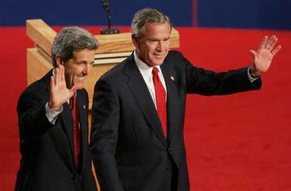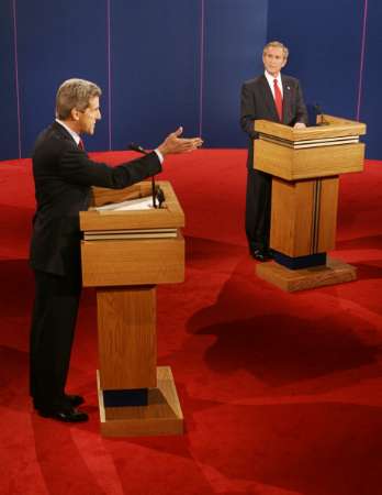 中新網(wǎng)10月14日電 美國總統(tǒng)候選人第三場辯論于美東時間13日晚9點在亞利桑那州立大學(xué)展開。由于是投票日前的最后一場辯論,布什與克里都將全力抓住這次給全國選民留下深刻印象、宣講施政方針、全面攻擊對方的最重要機(jī)會。