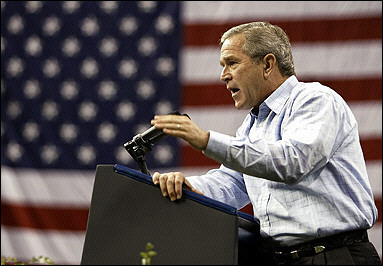 布什總統(tǒng)周六在佛羅里達(dá)州向支持者發(fā)表演說,他抨擊了克里在稅收政策上的記錄,試圖激起選民對于民主黨執(zhí)政期間稅負(fù)過重的擔(dān)憂。